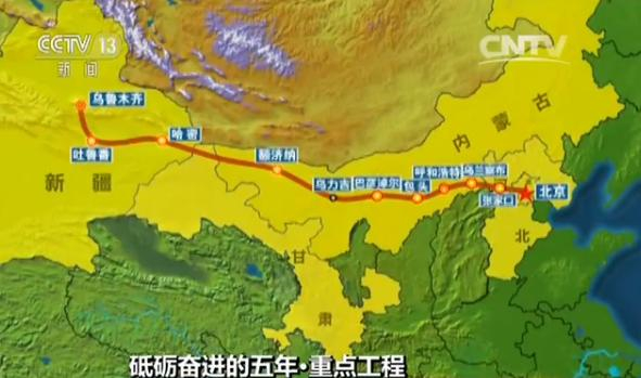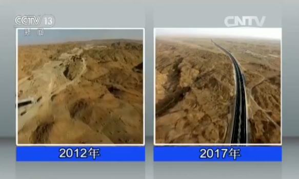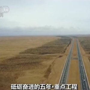 这是世界上穿越沙漠、戈壁最长的高速公路——京新高速。全长2540公里的京新高速途径北京、河北、内蒙古、甘肃、新疆5省区,是国家高速公路网中以北京为中心的第七条放射线,其中新建930公里的临白段穿越巴丹吉林 、腾格里和乌兰布和三大沙漠,于2012年开工,不久即将全线通车。和现有公路相比,京新高速使北京到乌鲁木齐的距离缩短了1300多公里,并将开辟一条新疆霍尔果斯口岸至天津港的最快捷出海通道,将海上丝绸之路与陆上丝绸之路相连。五年间,建设者在无路、无水、无通讯的沙漠戈壁中,探索积累了修建高速公路的生态经验。