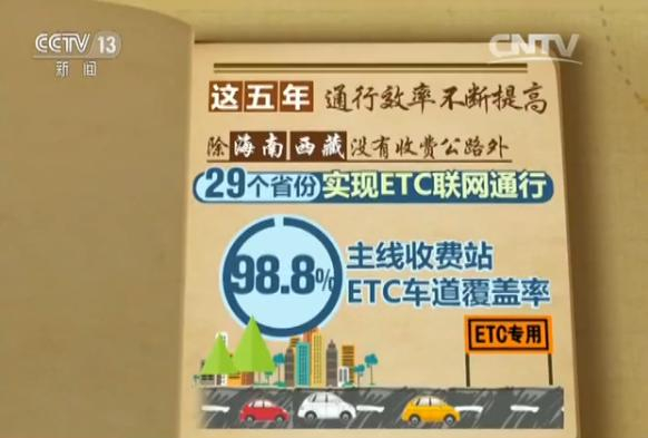 这五年,高速公路通行效率不断提高。除海南、西藏没有收费公路外,29个省份实现了ETC联网通行。主线收费站ETC车道覆盖率达98.8%,ETC用户突破5000万。