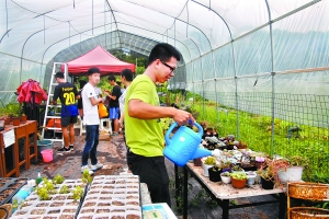 如今,这片“秘密花园”开辟出了多个区域,有蔬果区、藤蔓区、大棚区、花草区。其中花草区长出了一片近人高的白色百合,还有蓝色的鼠尾草、姜花正迎来了花季;而在大棚区,摆放了上百盆多肉植物,一些正在培植中的小多肉嫩芽初发。