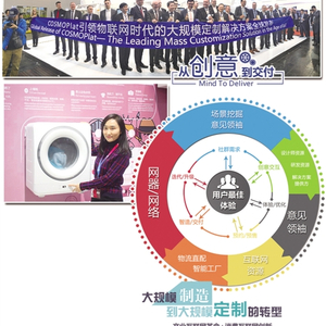 为展示大规模定制“落地”的成果,今年海尔在汉诺威工业展、AWE等顶级展会现场搭建了与真实冰箱互联工厂比例一致的示范线。该示范线包括定制交互、用户定制、模块匹配、柔性装配、智能插单、智能检测等7个工站以及13个节点。众多业界权威先后前往海尔展区定制尝鲜。中国家用电器协会理事长姜风通过ipad登录“众创汇”提出自己的要求,信息马上到达工厂,生成订单,工厂的智能制造系统自动排产,将信息传递到各个生产节点。短短几分钟,一台带有其签名的冰箱就诞生了。