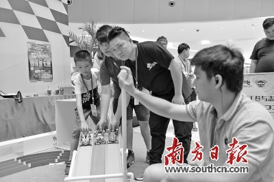 “儿子,要镇定,加油,老爸做你坚实的后盾。”在赛场,一对来自东莞的父子在作最后的装备整理。这位父亲介绍,对于迷你四驱车,8岁的儿子是他的老师,但他现在也“深陷其中”,但凡知道哪里有比赛,只要时间腾得开,他们都会积极参加,“玩迷你四驱车已经两年多了,运动增进了我们父子间的黏合度”。