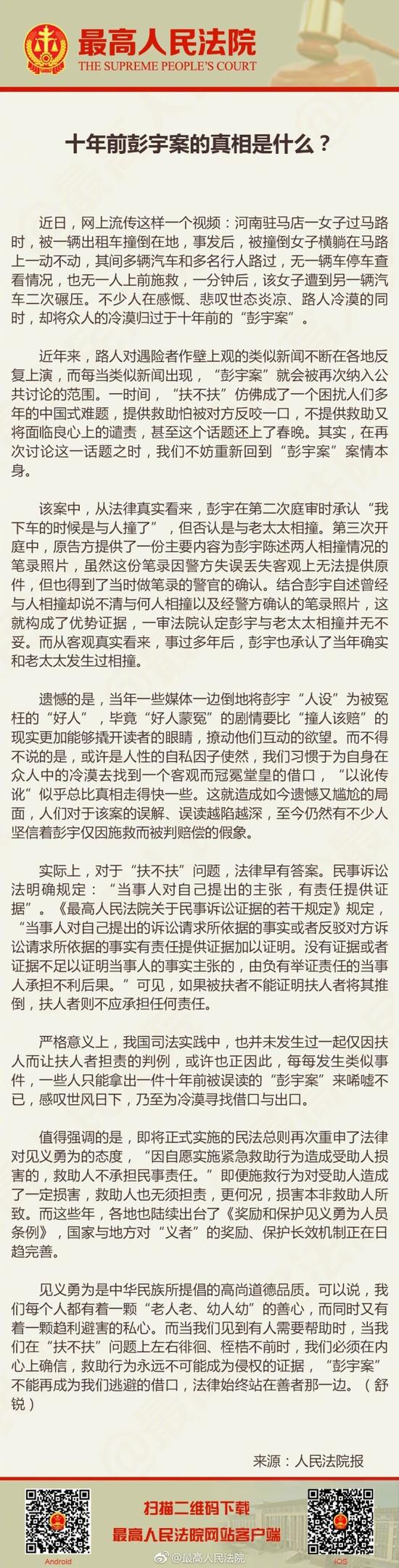 最高法十年后再谈彭宇案:真相究竟是什么?