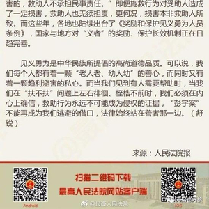 多年过去,“彭宇案”之所以还能保持如此“热度”,恐怕还归因于公众从此案的审理中,得出了“谬论”,即,法律不保护好人做好事。尽管从后来披露的信息看,法院认定彭宇与老太太相撞有“优势证据”,而彭宇之后也承认了确实和老太太发生过相撞,但经历了该事件的“反转”与“质疑”,“扶不扶”似乎已经成为一个“悖论”:提供救助怕被对方反咬一口,不提供救助又面临良心谴责。