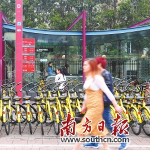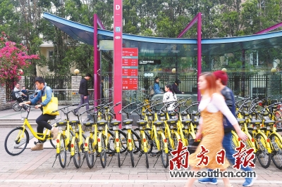 共享单车 在鹭江地铁口摆放的共享单车。 南方日报记者 符超军 摄
