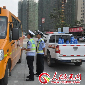 广西容县交警强化校车检查筑牢安全防线