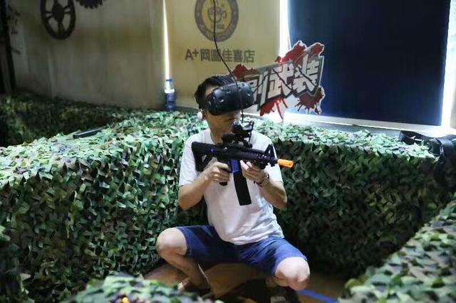 戴着VR头盔,持游戏机枪,在一个4平方米的“战壕”潜伏,等待敌人出现,再来一发血腥的爆头杀。在重庆市江北区某网咖内,已经有不少玩家驻足玩耍。