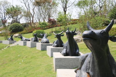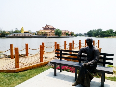 清代著名剧本《桃花扇》的作者孔尚任,曾专程拜访邵伯名士翰林院编修蒋继轼,留有《邵伯镇访蒋淑瞻,留尝樱笋》一诗:“厨里洗盘谋下酒,柳边系缆待尝鲜。”桃花坞片区,三步一桃、五步一柳,立有蒋继轼、孔尚任及书童雕像。铁牛湾片区,则汇聚了大运河沿线镇水的“九牛二虎一只鸡”,游客来到这里,就可以体验浓厚的运河镇水文化。