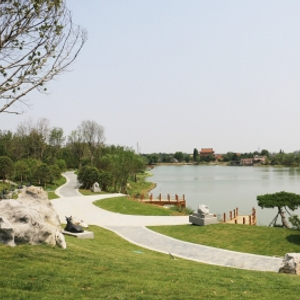 “荷塘四面,长着许多树,蓊蓊郁郁的。路的一旁,是些杨柳,和一些不知道名字的树。”朱自清曾在《荷塘月色》中有这样的描绘,4到6岁时,朱自清曾随父亲在邵伯生活,在《我是扬州人》一文中描述了邵伯往事:“住在运河边的万寿宫、向河里扔瓦片、骑铁牛等。”荷塘月色片区构景就源自此,利用天然水系栽种几亩清香淡雅的荷花,使人见景思文,荷塘边有一尊朱自清先生像,荷塘周围绿色葱郁,不远处小径通幽,水面微波粼粼,已颇有《荷塘月色》中“远远近近,高高低低都是树,这些树将一片荷塘重重围住”的味道。