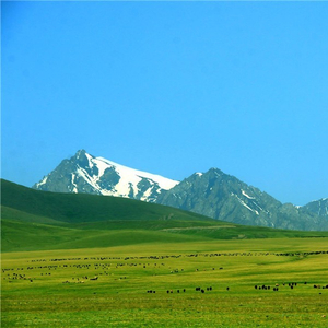 六月中旬,托克逊黑山草原被雪山环绕,漫山遍野的绿色,各种不知名的山花正“肆无忌惮”地盛开,五颜六色,格外夺目。草原上的牛群、马群和羊群在觅食,牧羊犬在羊群四周来回“巡视”,牧羊人有的骑着摩托车在驱赶着羊群,有的则干脆慵懒地躺在山坡上享受阳光下的惬意。