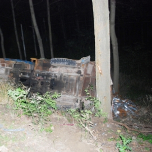 三轮摩托车被撞下河坎
