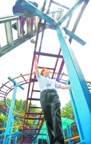 大型游乐设施的种类繁多,分为5个大类,共有65个系列。陈少鹏说:“为了吸引客流,每年都会有几十种新产品生产出来,几乎每台游乐设施都会有新的设计,大多数游乐设施也是只此一台,这也增加了检验设备的复杂度。而且,由于大型游乐设施不像汽车一样量产,可以进行一些破坏性试验和疲劳试验,有些问题通过试运行难以发现,通过长期使用才能暴露问题,所以定期检验非常重要。”