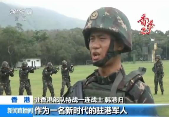 驻香港部队特战一连战士 韩港归:作为一名新时代的驻港军人,我们都有一种特别的情怀,那就是要把驻港精神发扬好、传承好,把香港守卫好,让祖国和人民放心。