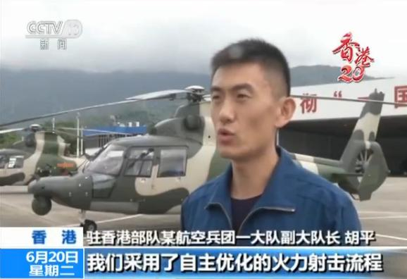 驻香港部队某航空兵团一大队副大队长 胡平:我们采用了自主优化的火力射击流程,极大地缩短了火力反应时间,显著地提高了我们精确打击的效能。