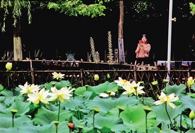 | 本报记者 雷键 摄 市民趁着灿烂阳光,休闲赏荷。 |