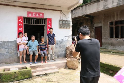 “从来没有拍过全家福,真是让你们费心了。”佛山村贫困户伍平中看着摄影师相机里的照片,乐滋滋地连声道谢。