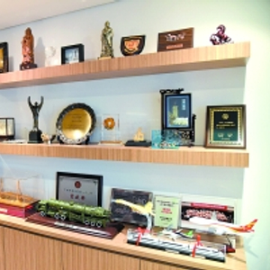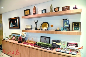 | 霍英东集团的会议室里摆放着各种纪念品。 |