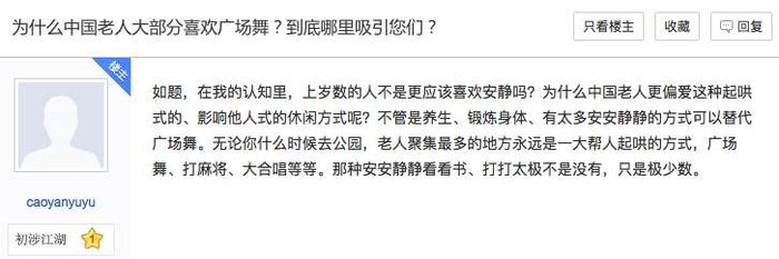 虽然社会学家为老人家们跳广场舞喜欢大分贝音乐找到了原因,但在贴吧里,青年网友仍然表示不同程度的不理解:
