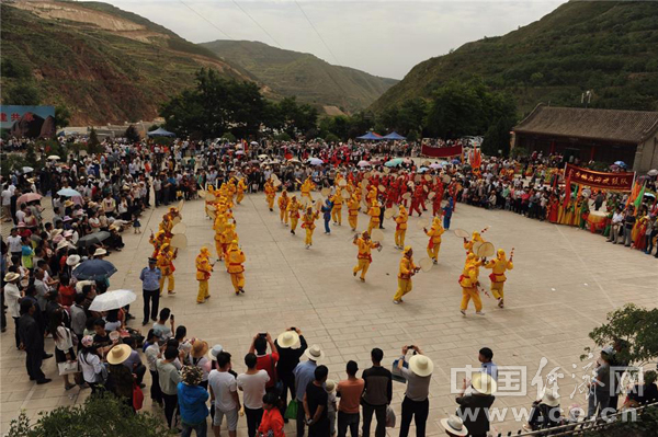 武山群众为游客表演非遗项目武山旋鼓舞