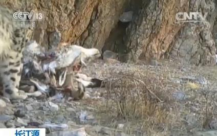 还有这只雪豹,捕获到了一只岩羊,把猎物拖到了镜头前,就开始大快朵颐。之后,它每天几乎都会来这儿吃一会儿,大约一周的时间,才吃完这只岩羊。期间一只狐狸也跑来偷吃了几口,这一切都被镜头拍了下来。