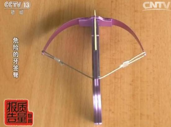 原标题:危险的牙签弩:三无产品危害大 30厘米远可轻易射穿易拉罐