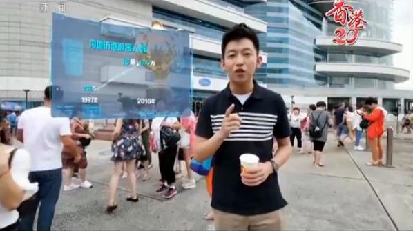 记者:“美食吸引着每年近6000万的游客前来香港,是香港本地人口的8倍,但您知道吗,现在香港每4个游客里,有3个都来自内地。对于内地游客来说,回归后的香港变得更“近”了。数据显示,从回归到现在,内地访港游客人数已经增长了18倍。”