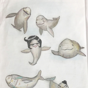 陈粲表示,前后一共制作了十多个Q版的江豚虽然看上去很简单,但他光草图就画了上百张。“在选择哪些造型去创作,我们也思索了很长时间,最终选择三国演义、水浒传等名著作为主题,然后才考虑创作形象。”他表示,此外他们还增加了部分人们熟悉的Q版表情,“每一幅图案都是参照江豚原有照片的基础上,再在网上搜集各式漫画表情。”