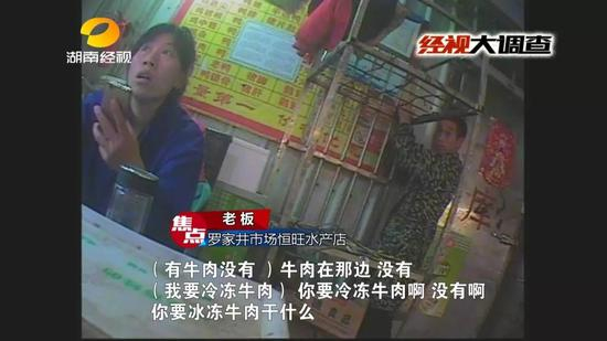 要么说没有,要么有也不卖!罗家井市场的老板们对冷冻牛肉是讳莫如深。屡屡碰壁之后,记者来到了第6家——“陈记水产批发部”。