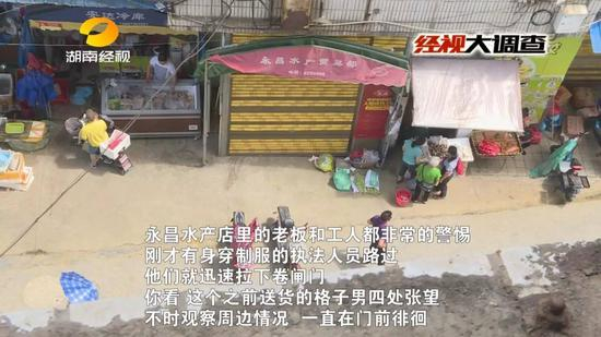 作为“走私牛肉”供货商安插在市场里的“耳目”,有任何的风吹草动,“永昌水产店”都不会开门营业。不过现在,在调查记者面前,“永昌水产店”的特殊身份已经完全暴露。
