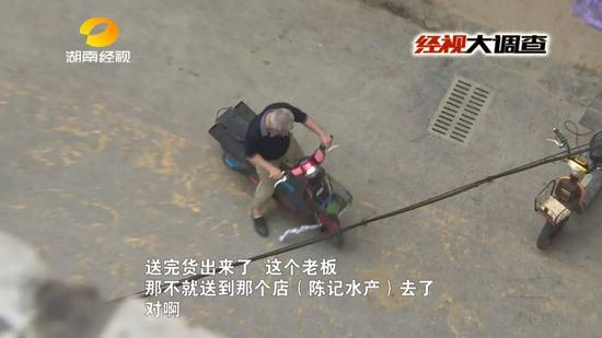 在认为安全后,“陈记水产”的老板电话通知送货!随后,一组记者原地等待,另一组记者埋伏在周边,密切观察,伺机跟踪、追查货源!在等待了近一个小时之后,送货人来了!