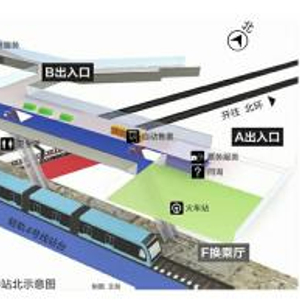 从长春站北出站口到长春站综合交通换乘中心共有(东)B2和(西)B1两个出口,乘客下火车后可顺着这两个出口直达换乘中心。轻轨票和地铁票均在站厅层售卖,乘客买完票后,跟随头顶上方醒目的地铁图标指引,从D口乘扶梯可直达地铁层,从A口或F口乘扶梯可到轻轨层。