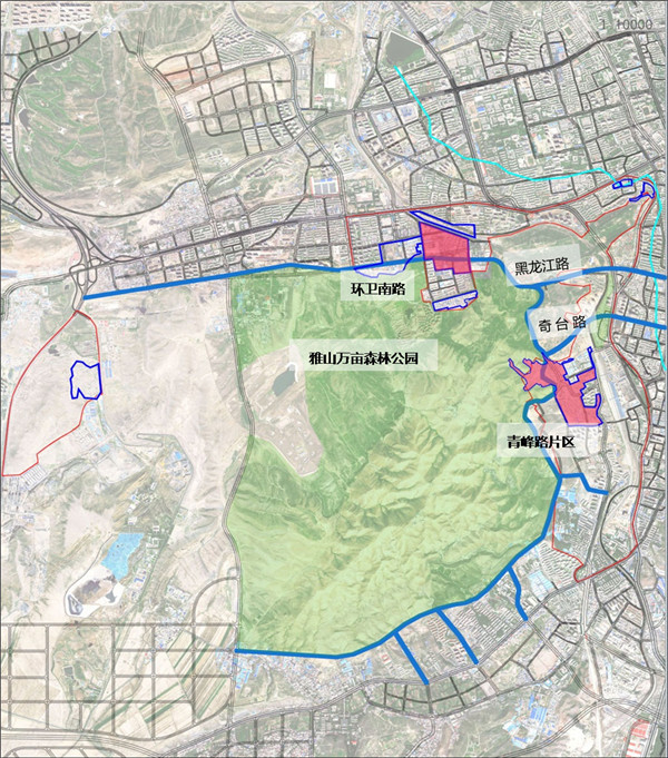 项目范围:东至宝山路、雅山北路,西至连霍高速,南至仓房沟中路,北至西山路。