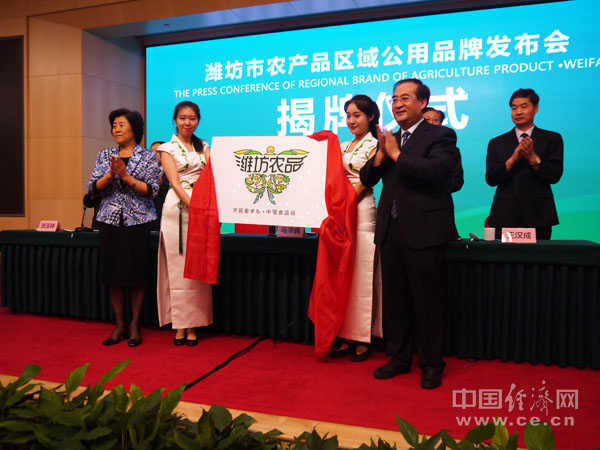 图为发布会现场举行“潍坊农品”揭牌仪式。中国经济网记者邓浩/摄
