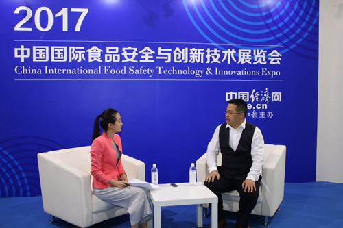 “2017中国国际食品安全与创新技术展览会”于6月29日至7月3日在北京举办,近百家权威机构和知名企业参展。图为内蒙古燕谷坊生态农业发展集团有限公司董事长兼CEO何均国接受中国经济网记者专访。中国经济网记者 韩肖 摄