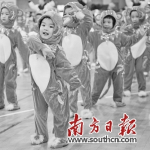 集体办幼儿园每月保教费低至400元。图为幼儿园的小朋友在亲子运动会表演节目。南方日报记者 王云 摄
