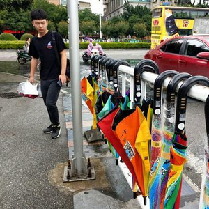 据了解,目前共享e伞已在深圳、广州、南昌等一二线城市进行投放。与魔力伞、JJ伞、oto等共享雨伞采取设桩投放的方式不同,共享e伞采取无桩投放。无桩投放能省去智能借还设备的成本,也为用户使用提供了方便。但政府对此的态度并不明朗,6月22日,共享e伞在杭州市区投放时,被城管要求“下架”。相关执法人员称,共享雨伞在户外公共区域投放时,存在占用公共设施的情况。