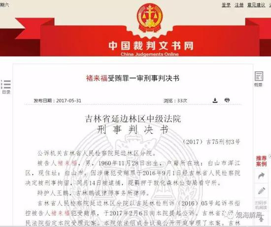 法网恢恢,疏而不漏。最终,今年5月3日,吉林省延边林区中级法院作出一审判决,认定褚来福身为国家工作人员,利用职务便利,多次为他人谋取利益并收受贿赂计人民币850.504075万元,数额特别巨大,其行为已构成受贿罪。公诉机关指控的事实和罪名成立。