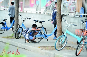 部分共享单车机械锁存在漏洞,很多小学生掌握了开锁秘技。广报记者轩慧摄