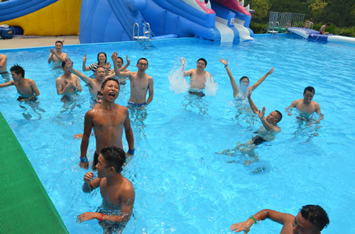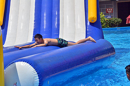 “因为第一次参加这种活动,刚上场的时候有点紧张,不过在掉入水中的那一刻感觉很刺激。”一位来自万州的游客孙建讲道。虽然这位大叔夸下“海口”一定能成功,但他在中途还是掉入水中。当救生员把他送上岸时,他坦言道:“游戏并不是想像得那么简单,这里的水上大冲关共分为六个关卡,分别是蜻蜓点水、步步惊心、鱼跃龙门、勇攀高峰、一苇渡江、荆棘丛生等,我便是在第五关不慎落水的。”