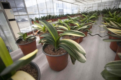 基地从长春引进数棵价值十万元以上、苗龄达到20年以上的种兰。如今,基地已有1.2万棵种兰,一年可产君子兰苗100万株。