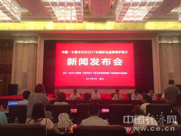 中国经济网中卫7月6日讯 宁夏枸杞又到了瓜果飘香的季节,“香山硒砂瓜“美名传,许多喜欢吃西瓜的人已经开始在市场上寻找它的身影。然而好品牌卖得好,假货就要来充抵。近两年中卫市在加大硒砂瓜宣传推广的同时,加强了对其品牌保护力度。7月5日上午“ 2017年硒砂瓜品牌推介新闻发布会”在银川如期召开。