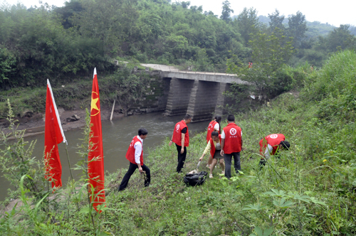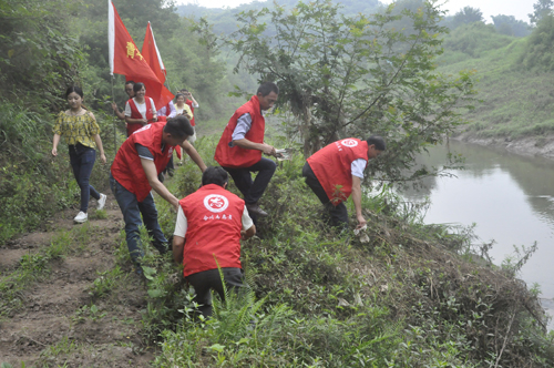 清理水竹枝上杂物。通讯员 汪治忠 摄华龙网7月6日6时讯(通讯员 汪治忠)近日,重庆市合川区香龙镇机关、村(社区)青年团员、志愿者共40多人进入流溪河道,对沿河两岸的废弃物品、白色垃圾、漂浮物进行清理。志愿者们干劲十足,不怕累,不怕脏,手拿镊子、袋子,把岸边的废纸、菜叶、塑料等杂物捡入袋中;特别是悬挂在水竹丫上的垃圾,捡起来十分吃力,志愿者有的鞋挂脱了、有的手刺伤了,大家都不在乎,为打造“山青水秀、风景美丽”的田园风光而奋斗着。