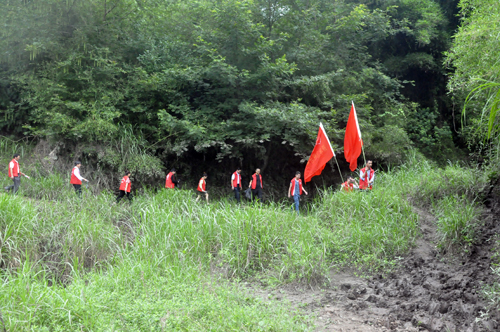 志愿者们向河道深处前行。通讯员 汪治忠 摄