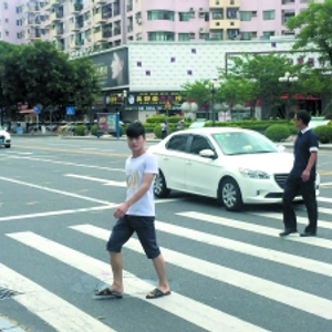 在东莞,行人过马路,机动车不减速、不停车、按喇叭催促。统计显示,今年上半年东莞交通事故1982宗,而其中因机动车行经人行横道时未按规定礼让行人、行人随意穿插马路等而引发的交通事故不在少数。