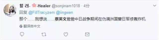 还有网友揭露了蔡英文家的“黑历史”——蔡英文爸爸(蔡洁生)中日战争期间替日本修飞机。