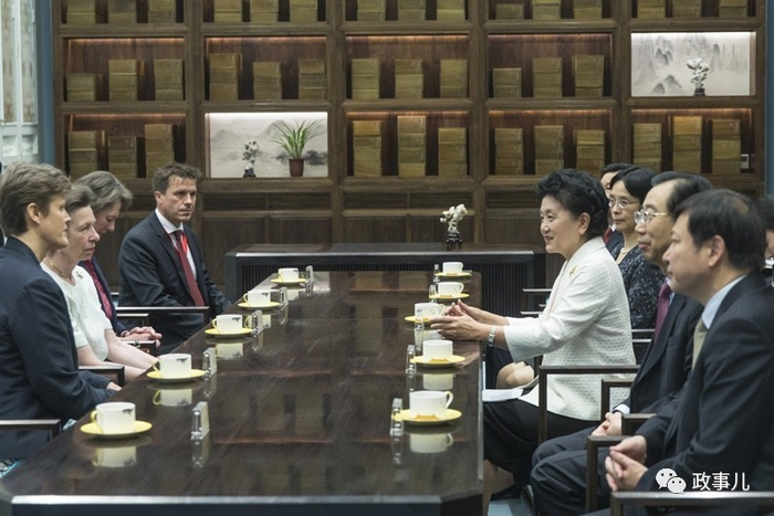 抵京当天,国务院副总理刘延东在故宫会见了她。刘延东高度评价英王室在促进中英各领域交流合作、增进人民了解与友谊方面发挥的特殊重要作用。