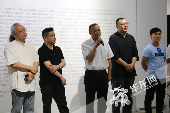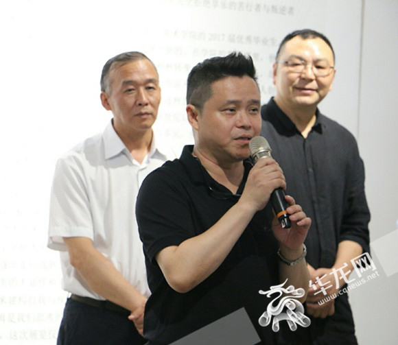 庞茂琨宣布活动启幕7月9日下午4点,众多文艺界大腕和嘉宾莅临二厂文创公园T²国际当代艺术中心,庞茂琨宣布《上·下》四川美术学院2017届毕业生优秀作品展暨公共艺术互动推广计划正式启幕。