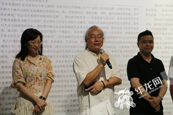 吴洁主持开幕仪式她在展览的序言里提到,艺术需要公众,公众亦需要艺术。面对艺术与大众之间疏离的危机,我们想打破大众无法理解的艺术家自说自话的尴尬局面,将艺术家与非艺术家直接联系,消弭掉艺术与大众的界限。艺术展览、艺术互动、艺术项目传播的全方位形式让观看者直接参与到艺术现场之中,而不再仅仅是一个观赏者。只有艺术家与大众有多方式的互动交流机会,才能消除“艺术”光环让大众通过最日常的生活介入艺术并且运用艺术的方式再去构建日常生活,如此一来便可建立良好的艺术生态环境。与此同时也只有引导大众理解艺术才能使艺术进入大众,艺术家才有更广阔的空间、资源以及所期待的效应,艺术作品才更有生效的可能性,这也正是艺术教育需要实践的部分。