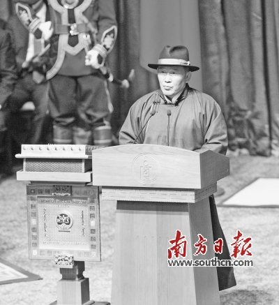 10日,蒙古国新总统巴特图勒嘎在首都乌兰巴托国家宫出席就职仪式时发表讲话。新华社发