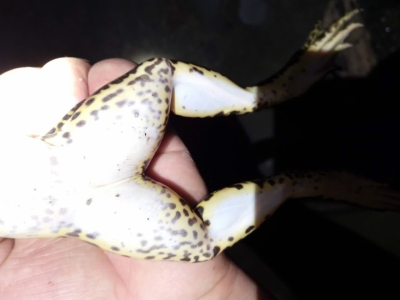 近日来,江都丁伙镇,一夜钓者在河边钓鱼时,发现了一种“与众不同”的青蛙,“个头大,腿上斑纹看上去像老虎皮。”其实,这种青蛙就是虎纹蛙,国家二级保护动物,曾因人类大量捕食数量剧减而成为濒危动物。在扬州,虽然有过虎纹蛙记录,但近些年来却很少见到它。