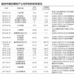 比如,去年9月,融创以总价157.61亿元收购融科智地房地产股份有限公司若干目标公司的股权和债权。目标公司有42个物业项目的相关权益,分别位于北京、天津、重庆和杭州等16个中国城市,总占地面积约693.72万平方米,总建筑面积约1802.22万平方米,未售面积约730.05万平方米。